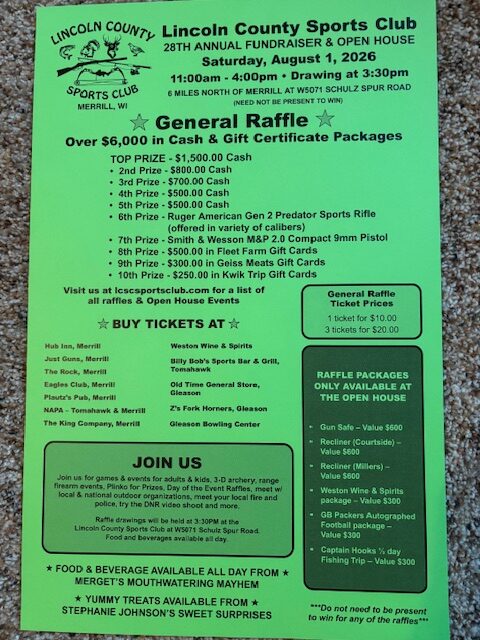 The Lincoln County Sports Club 28th Annual Fundraiser and Open House date will be SATURDAY AUGUST 1st